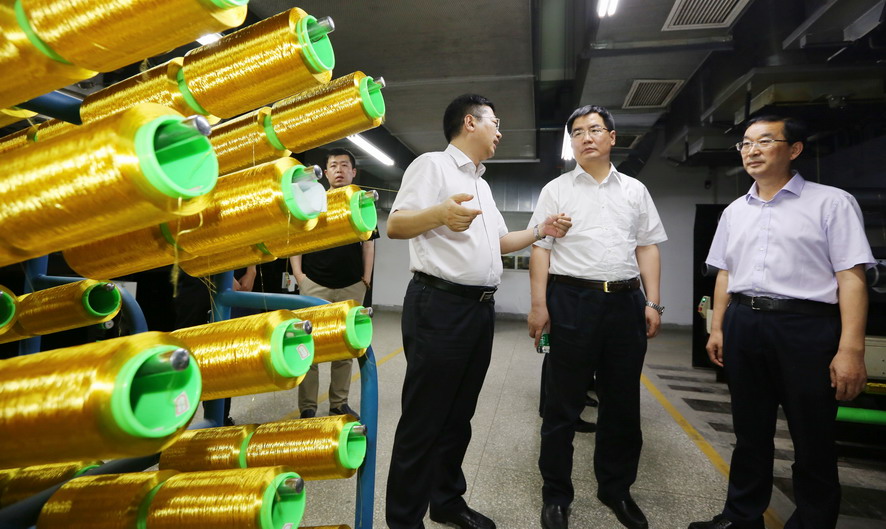 盧衛生副司長在參觀了奧神新材料公司展廳和生產線后,聽取了集團公司總經理胡建明、副總經理王士華關于奧神新材料高性能纖維產業發展介紹,近年來,奧神新材料公司始終秉承“創業、專注、匯聚、引領“的核心價值觀,以”致力于環境和生命的保護,成為全球領先的高性能纖維制造商“為發展愿景,不斷追求技術創新,聯合東華大學采用自主知識產權的干法紡絲生產技術開發聚酰亞胺纖維,在國際上屬于首創。盧衛生副司長對此予以了充分肯定,并希望奧神新材公司要不斷爭取政策支持,繼續加大與國內高校院所的產學研合作,以市場需求導向,追求產品差異化、特色化,延伸高新能纖維產業鏈,提升資源、渠道、品牌、標準等軟實力,形成以“技術、品牌、綠色”為發展核心的競爭新優勢,促進中國化纖行業的發展。