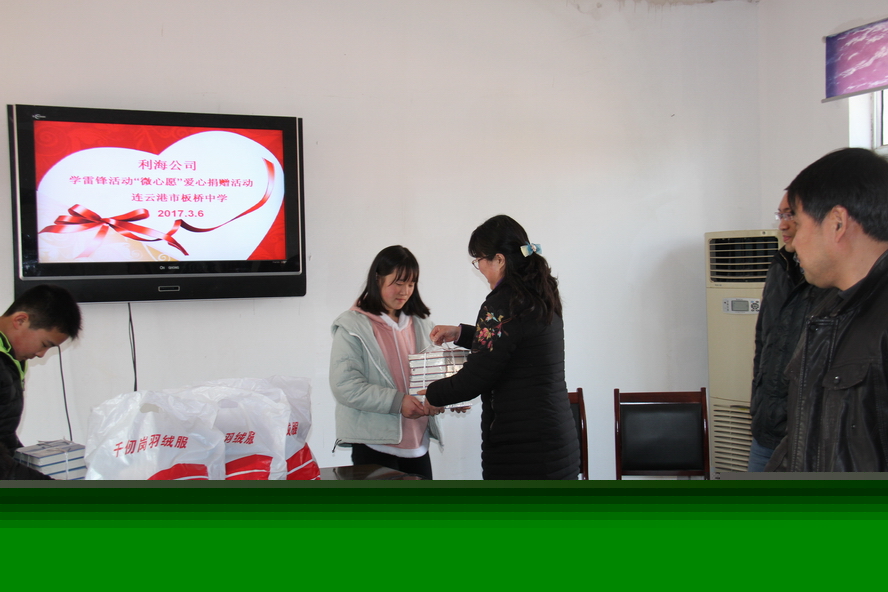 3月6日下午,利海公司按連云區“學雷鋒志愿服務月”活動內容,主動聯系板橋中學,了解到有部分貧困學生的實際困難后,積極與學校開展圓夢“微心愿”活動,為他們送去棉衣與書籍等學生們心中的“微心愿”。
