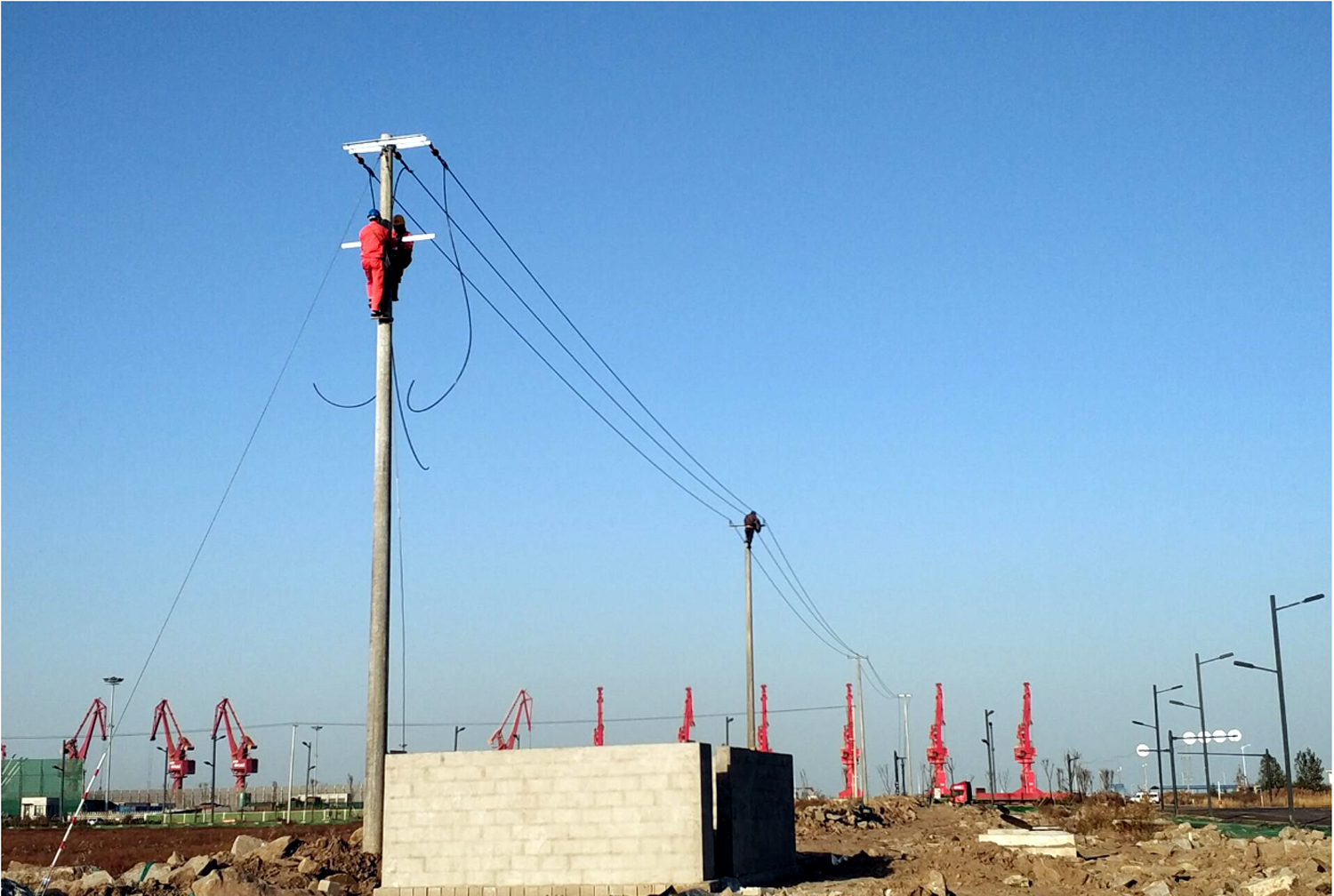“他們這么年輕,沒有經驗,能爬這么高的電桿么?”臺南供電所負責人趙勇對他們爬桿作業倍感擔心。在15米高的電桿前,青年突擊隊員們二話不說,穿上腳扣,戴上保護手套,系好安全帶,動作干脆利落,三下五除二就爬到了桿頂,在隊長孫迎照的指揮下開始了施工作業,在規定時間內圓滿完成了工作任務,徹底掃除了趙所長之前所有的擔心?!拔覀兡苄校覀兛梢?/span>!”逐漸成為青年突擊隊響亮的口號。在各個施工現場,總能看見這支青年突擊隊隊員們穿梭于工地的各個角落,在各種角鐵鋼架上進行復雜的操作,在高高的電桿上檢修故障??偰茉谑┕がF場的每一個角落看見青年突擊隊員進行現場施工、組織協調、質量控制、質量驗收等各項工作時的身影。他們兢兢業業、埋頭苦干,確保了項目計劃的順利實施,保障了項目工期的順利推進。