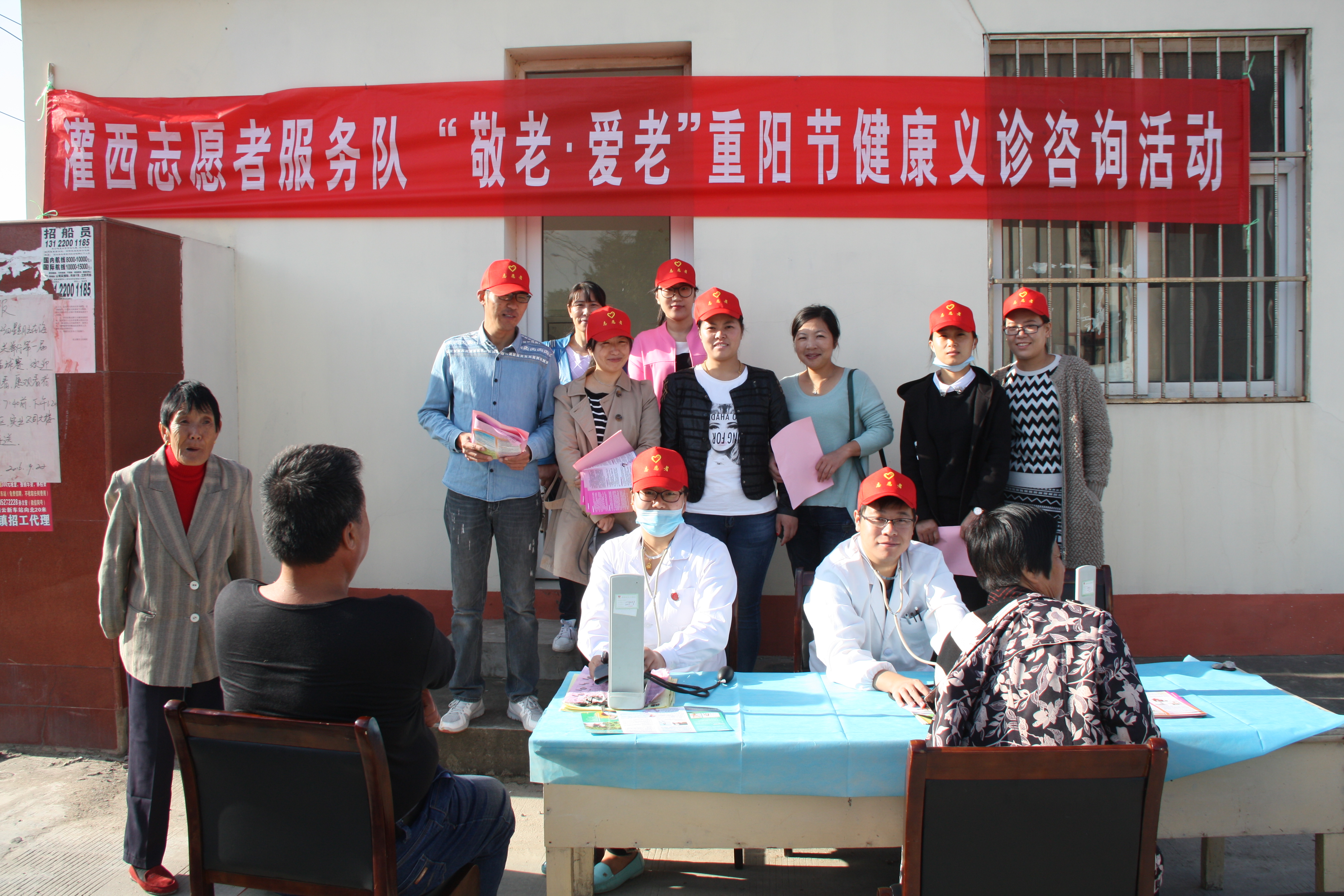 為弘揚中華民族“敬老、愛老”的優良傳統,增強社區居民尊老愛老意識,在重陽節來臨之際,灌西志愿者服務隊在灌西醫院開展“敬老、愛老”重陽節健康義診咨詢活動。