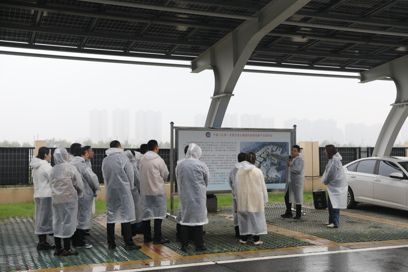 活動中,觀摩團沿著精心設計的路線,先后走進四大特色點位,每一處都展現出鮮明的黨建特色與發展活力。在金橋房地產公司黨總支負責的連云港國際醫藥創新產業園,“燈塔先鋒” 培育對象徐震結合產業園從規劃建設到招商運營的全流程,詳細分享了黨組織如何在產業布局、服務企業、創新發展中發揮 “主心骨” 作用,其 “黨建 + 產業” 的融合模式,讓在場人員深刻體會到黨建引領對產業高質量發展的強大賦能;隨后,觀摩團來到供電工程分公司黨委負責的光伏運維現場,培育對象賀通華以光伏板下的 “紅色運維”為主題,講解了黨組織如何帶領團隊攻克技術難題、保障新能源高效輸出,綠色能源與紅色黨建的碰撞,為大家提供了“雙碳”目標下黨建工作的新思路;在王建勞模工作室,培育對象王建通過展示技術創新成果、分享師徒傳承故事,生動詮釋了“勞模精神 + 黨建引領”的育人模式,工作室里滿墻的榮譽與實用的創新工具,讓“精益求精、敢為人先”的精神深入人心;最后一站來到了金航公司巨龍農貿市場,培育對象韓永躍圍繞“黨建+民生服務”,介紹了如何通過黨員示范崗、志愿服務隊等載體,優化市場管理、提升服務質量,切實保障群眾“菜籃子”安全,讓黨建成果看得見、摸得著。