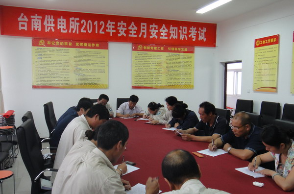 6月27日下午,為進一步增強員工的安全意識、強化安全責任、端正安全態度、規范安全行為、創造安全環境,臺南供電所組織安全知識考試。 該所對此次考試高度重視,嚴格遵循普及全員、側重基礎、切合實際、易于實行的宗旨,圍繞《安全生產法》、《三項制度》、《供電班組管理考核辦法》等相關內容,提前編制、發放學習資料。全體員工都深刻認識到安全的重要性和必要性,積極應對此次閉卷考試,利用集體輔導和個人自學的形式,全身心地投入到學習熱潮中,真正營造了“科學發展,安全發展”的濃厚氛圍。(朱兵)