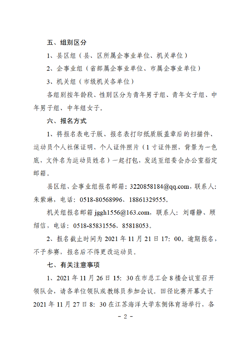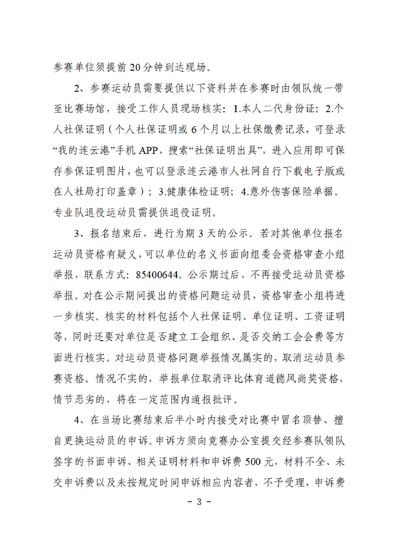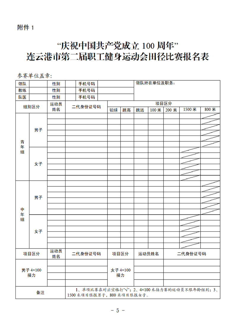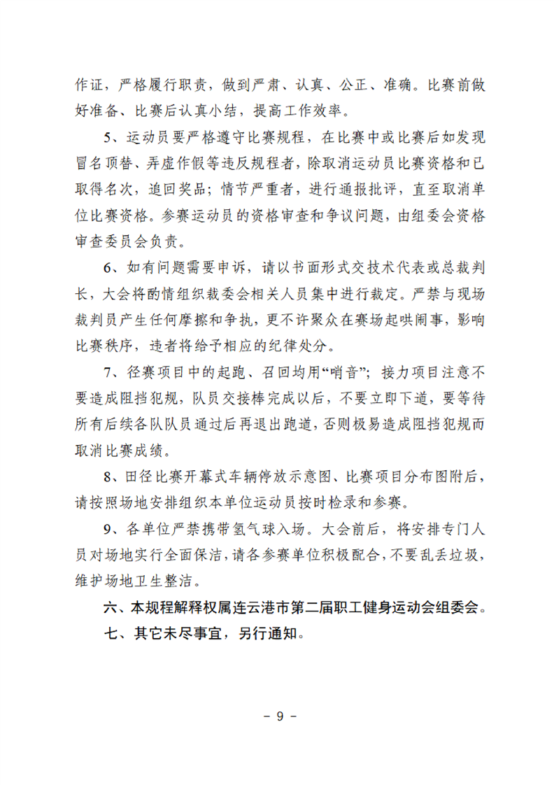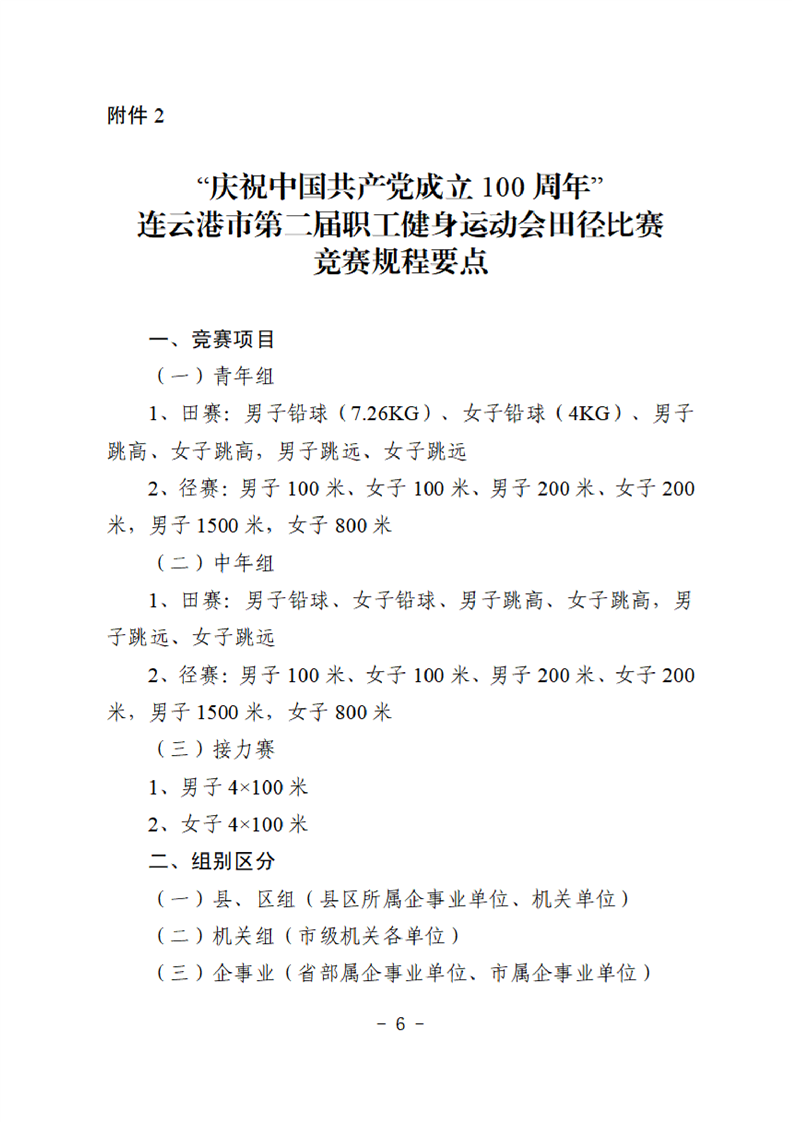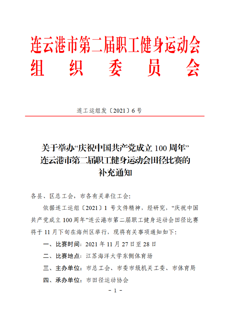 連云港市第二屆職工健身運動會田徑比賽的補充通知