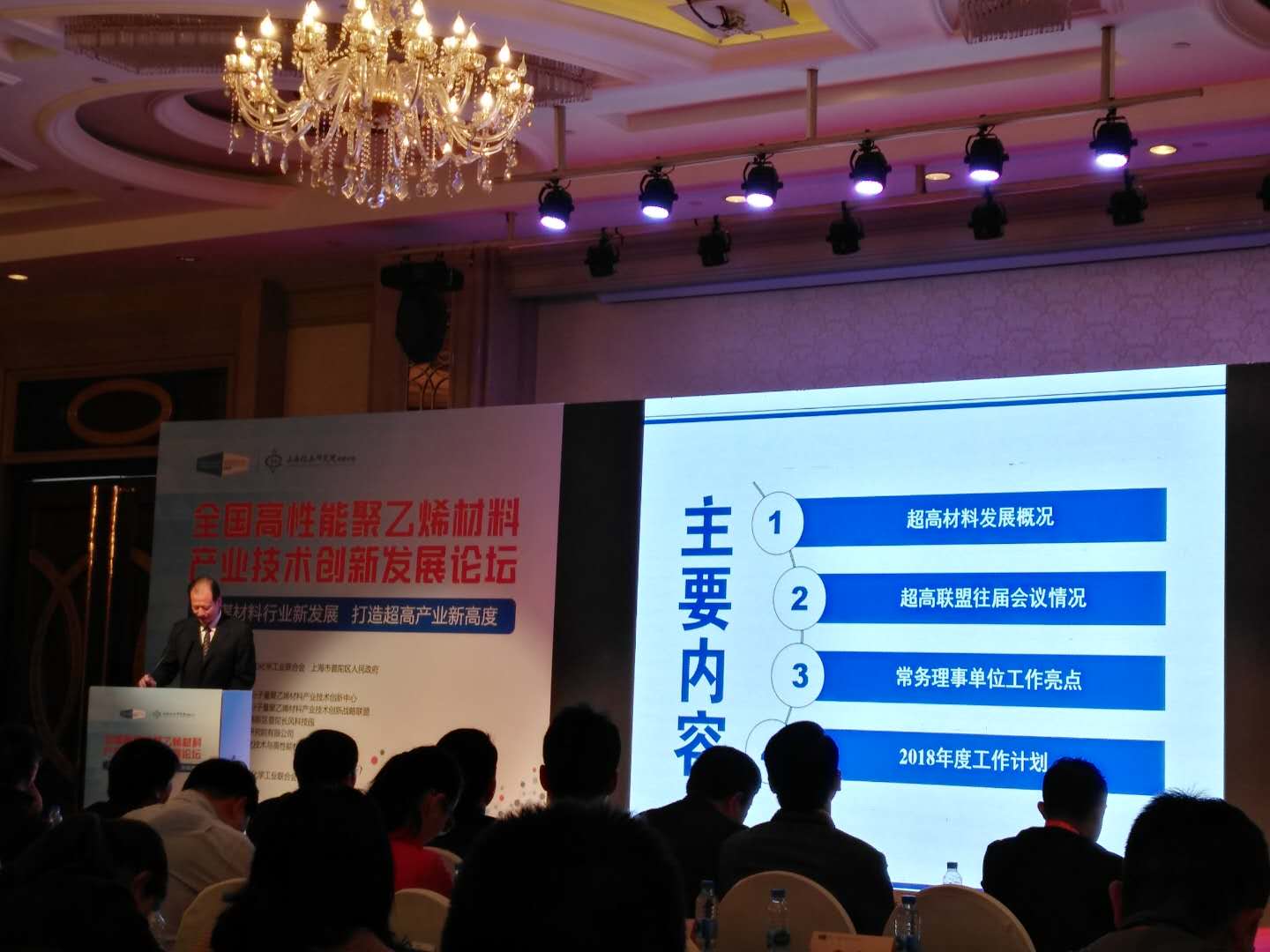 3月27日-29日,神特公司受邀參加由上海化工研究院有限公司、全國超高分子量聚乙烯材料產業技術創新戰略聯盟、全國超高分子量聚乙烯材料產業技術創新中心、上海張江高新區普陀園長風科技園、聚烯烴催化技術與高性能材料國家重點實驗室聯合主辦的2018全國高性能聚乙烯材料產業技術創新發展論壇。董事長張其海攜蔣干兵、張海寧、王爽芳三位副總參加了此次論壇。