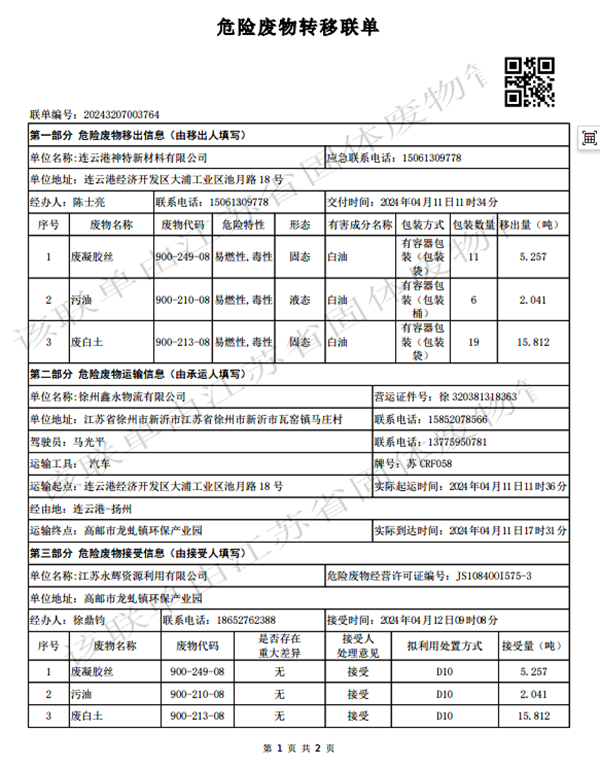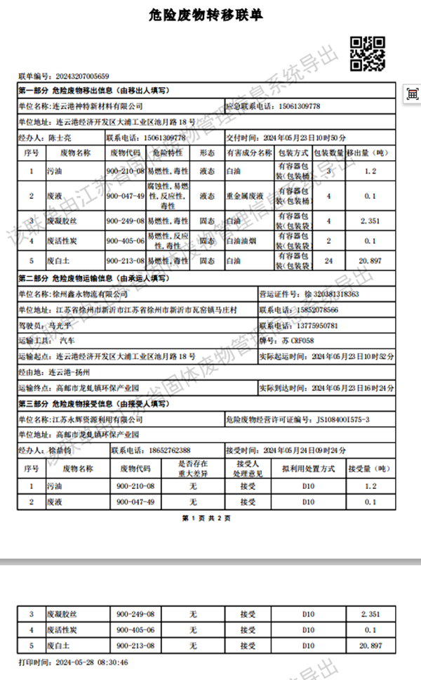 2024年第二季度危廢處置情況公示