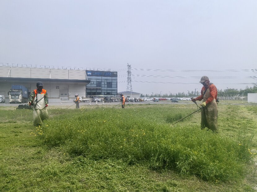 經過40人次連續3小時奮戰,4000平方米草坪清理任務高標準、高質量圓滿完成。從草坪修剪到雜物清運,從整體平整到細節打磨,每一處都彰顯嚴謹作風與專業水準。全體作業人員頂烈日、耐辛苦,全程堅守一線,用汗水換來了整潔優美的廠區環境,為重要活動順利開展提供了堅實保障。