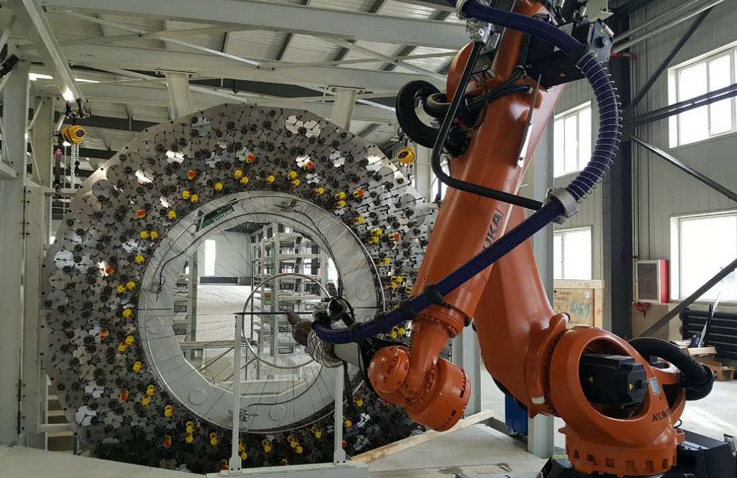 采用大規模機械臂裝置,通過控制面板輸入編織程序,自動完成對碳纖維、芳綸纖維等高性...